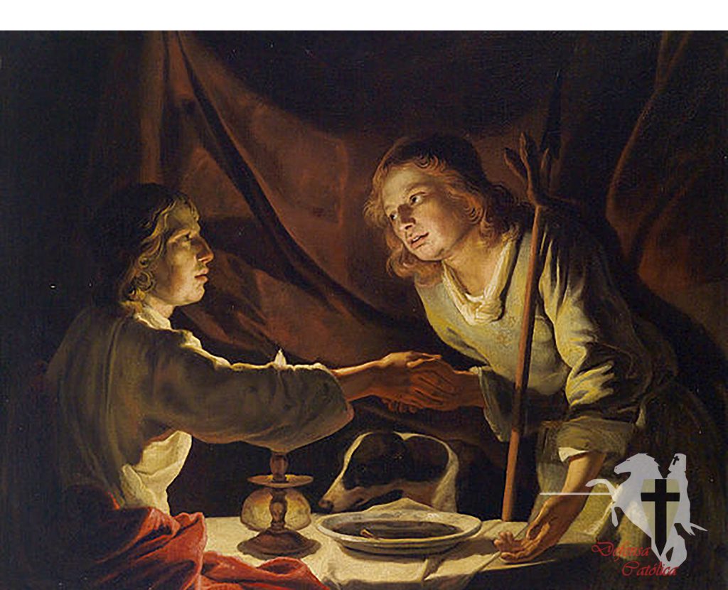 <<𝑌 𝑔𝑢𝑖𝑠𝑜́ 𝐽𝑎𝑐𝑜𝑏 𝑢𝑛 𝑝𝑜𝑡𝑎𝑗𝑒; 𝑦 𝑣𝑜𝑙𝑣𝑖𝑒𝑛𝑑𝑜 𝐸𝑠𝑎𝑢́ 𝑑𝑒𝑙 𝑐𝑎𝑚𝑝𝑜, 𝑐𝑎𝑛𝑠𝑎𝑑𝑜, 𝑑𝑖𝑗𝑜 𝑎 𝐽𝑎𝑐𝑜𝑏: 𝑇𝑒 𝑟𝑢𝑒𝑔𝑜 𝑞𝑢𝑒 𝑚𝑒 𝑑𝑒𝑠 𝑎 𝑐𝑜𝑚𝑒𝑟 𝑑𝑒 𝑒𝑠𝑒 𝑔𝑢𝑖𝑠𝑜 𝑟𝑜𝑗𝑜, 𝑝𝑢𝑒𝑠 𝑒𝑠𝑡𝑜𝑦 𝑚𝑢𝑦 𝑐𝑎𝑛𝑠𝑎𝑑𝑜. 𝑃𝑜𝑟 𝑡𝑎𝑛𝑡𝑜 𝑓𝑢𝑒 𝑙𝑙𝑎𝑚𝑎𝑑𝑜 𝑠𝑢 𝑛𝑜𝑚𝑏𝑟𝑒 𝐸𝑑𝑜𝑚. 𝑌 𝐽𝑎𝑐𝑜𝑏 𝑟𝑒𝑠𝑝𝑜𝑛𝑑𝑖𝑜́: 𝑉𝑒́𝑛𝑑𝑒𝑚𝑒 𝑒𝑛 𝑒𝑠𝑡𝑒 𝑑𝑖́𝑎 𝑡𝑢 𝑝𝑟𝑖𝑚𝑜𝑔𝑒𝑛𝑖𝑡𝑢𝑟𝑎. 𝐸𝑛𝑡𝑜𝑛𝑐𝑒𝑠 𝑑𝑖𝑗𝑜 𝐸𝑠𝑎𝑢́: 𝐻𝑒 𝑎𝑞𝑢𝑖́ 𝑦𝑜 𝑚𝑒 𝑣𝑜𝑦 𝑎 𝑚𝑜𝑟𝑖𝑟; ¿𝑝𝑎𝑟𝑎 𝑞𝑢𝑒́, 𝑝𝑢𝑒𝑠, 𝑚𝑒 𝑠𝑒𝑟𝑣𝑖𝑟𝑎́ 𝑙𝑎 𝑝𝑟𝑖𝑚𝑜𝑔𝑒𝑛𝑖𝑡𝑢𝑟𝑎? 𝑌 𝑑𝑖𝑗𝑜 𝐽𝑎𝑐𝑜𝑏: 𝐽𝑢́𝑟𝑎𝑚𝑒𝑙𝑜 𝑒𝑛 𝑒𝑠𝑡𝑒 𝑑𝑖́𝑎. 𝑌 𝑒́𝑙 𝑙𝑒 𝑗𝑢𝑟𝑜́, 𝑦 𝑣𝑒𝑛𝑑𝑖𝑜́ 𝑎 𝐽𝑎𝑐𝑜𝑏 𝑠𝑢 𝑝𝑟𝑖𝑚𝑜𝑔𝑒𝑛𝑖𝑡𝑢𝑟𝑎. 𝐸𝑛𝑡𝑜𝑛𝑐𝑒𝑠 𝐽𝑎𝑐𝑜𝑏 𝑑𝑖𝑜 𝑎 𝐸𝑠𝑎𝑢́ 𝑝𝑎𝑛 𝑦 𝑑𝑒𝑙 𝑔𝑢𝑖𝑠𝑎𝑑𝑜 𝑑𝑒 𝑙𝑎𝑠 𝑙𝑒𝑛𝑡𝑒𝑗𝑎𝑠; 𝑦 𝑒́𝑙 𝑐𝑜𝑚𝑖𝑜́ 𝑦 𝑏𝑒𝑏𝑖𝑜́, 𝑦 𝑠𝑒 𝑙𝑒𝑣𝑎𝑛𝑡𝑜́ 𝑦 𝑠𝑒 𝑓𝑢𝑒. 𝐴𝑠𝑖́ 𝑚𝑒𝑛𝑜𝑠𝑝𝑟𝑒𝑐𝑖𝑜́ 𝐸𝑠𝑎𝑢́ 𝑙𝑎 𝑝𝑟𝑖𝑚𝑜𝑔𝑒𝑛𝑖𝑡𝑢𝑟𝑎>>.